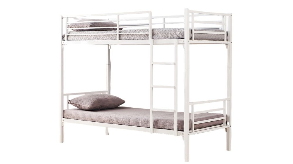 This matte metal bunk bed frame adds a modern touch to any bedroom while remaining straightforward and functional. It blends contemporary design with long-lasting sturdiness with its simple lines and robust construction. Available in Black & White.