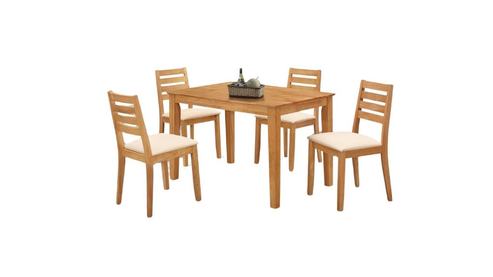 Pine Table with Wooden Cushioned Chairs upholstered in Cream fabric