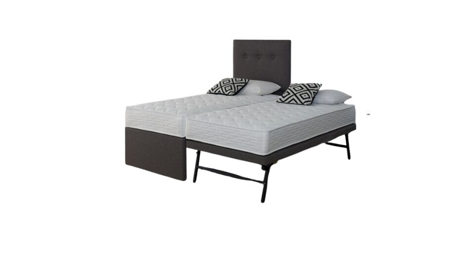 The Deluxe Grey Guest Bed is a stylish and practical sleeping solution, perfect for accommodating guests with ease. Designed for versatility, it opens up to provide two full-size single beds, each measuring (3ft) 90cm. x 190cm. When not in use, one bed conveniently stores underneath the other to save space. Supplied with two comfortable foam mattresses, this guest bed ensures a restful night's sleep while maintaining a sleek and modern look. Ideal for spare rooms, or any occasion requiring extra sleeping arrangements.
