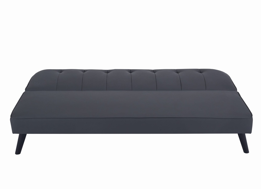The Brooklyn sofa bed features a click-clack mechanism and a modern design, making it a stylish and functional addition to any space. available in grey fabric, grey PU, or grey velvet, it easily convert's from a sofa to a bed, perfect for contemporary living areas.
