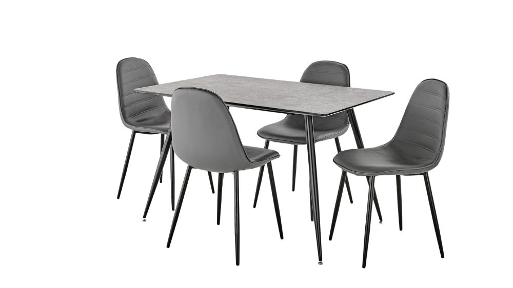 Transform your dining experience with the Miami Fixed-Top Table paired with the stylish Madrid Grey PVC Chairs. This sleek concrete grey table offers a modern Scandinavian minimalist touch, perfect for any dining area, while the comfortable grey chairs provide both elegance and durability. Ideal for family meals or entertaining guests, this set combines functionality with contemporary design, making it a must-have for your home. Elevate your space and enjoy every meal in style!
