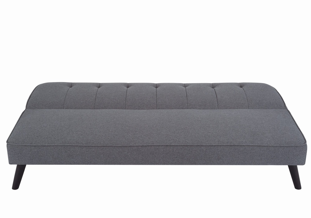 The Brooklyn sofa bed features a click-clack mechanism and a modern design, making it a stylish and functional addition to any space. available in grey fabric, grey PU, or grey velvet, it easily convert's from a sofa to a bed, perfect for contemporary living areas.